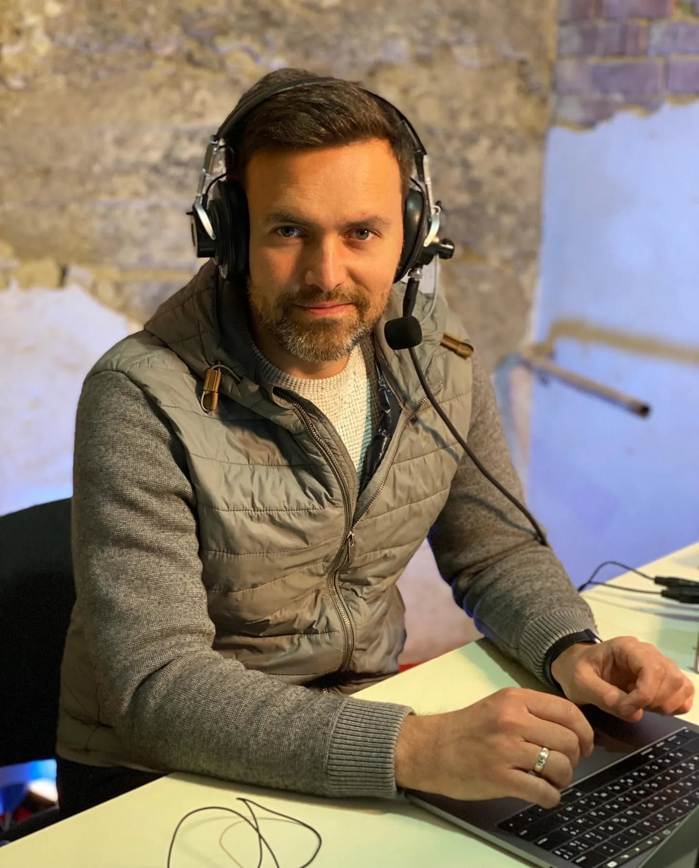 Перед камерою коментатор постав у звичайному сірому светрі та в жилетці, а позаду його спини – облуплена стіна та цегла. Таким цьогоріч виглядає коментаторське місце Євробачення-2022.