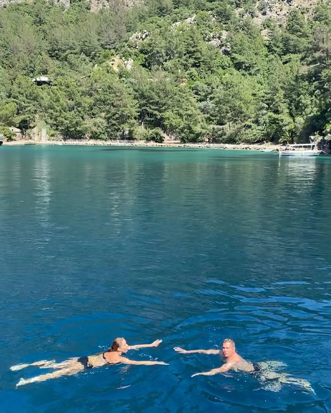 У відпустку в Туреччину пара вирушила з 4-річним сином Іваном і друзями. Навіть попри третю вагітність Катя Осадча не відмовляється від активного відпочинку. Зі знаменитим чоловіком Юрієм Горбуновим вона поплавала у відкритому морі.