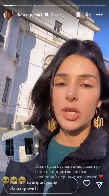 Будинок учителя. Тут я отримала свій диплом інституту музики імені Р. М. Глієра. У цьому будинку я дала купу концертів, коли була студенткою. Просто дуже боляче бачити, як ворог крок за кроком намагається відібрати у нас те, що ми любимо, цінуємо. Але він не відбере у нас свободи. Як то кажуть, х*р вам, а не Україна,