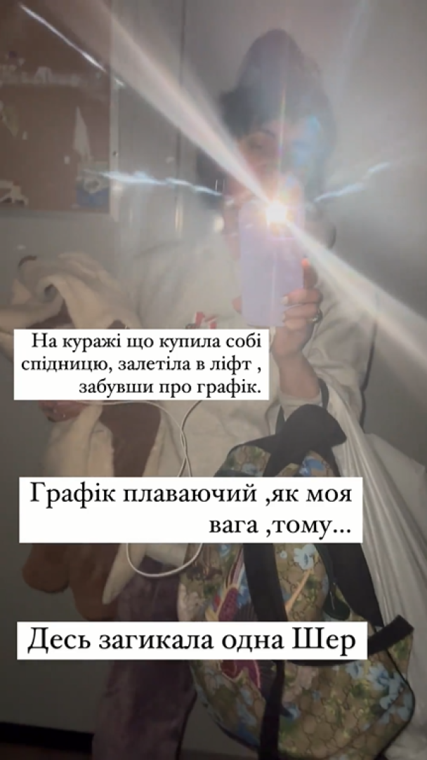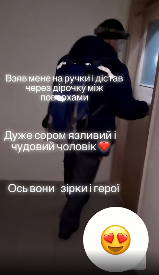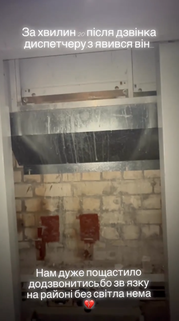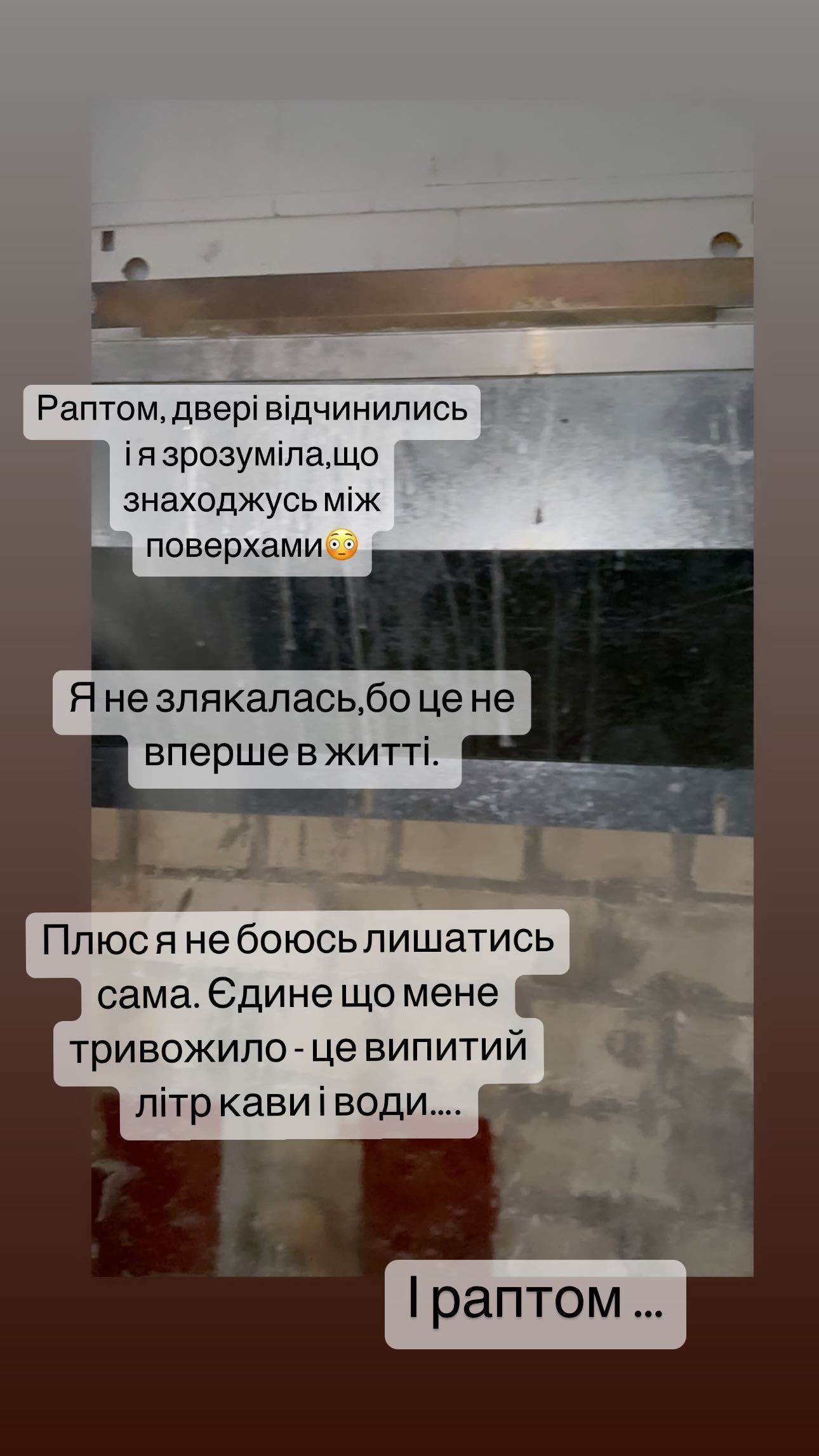 Артистка розповіла про цю ситуацію в інстаграм-сторіс. На щастя, у ліфті був стілець, то Оля хоча б змогла присісти, поки очікувала фахівців.
