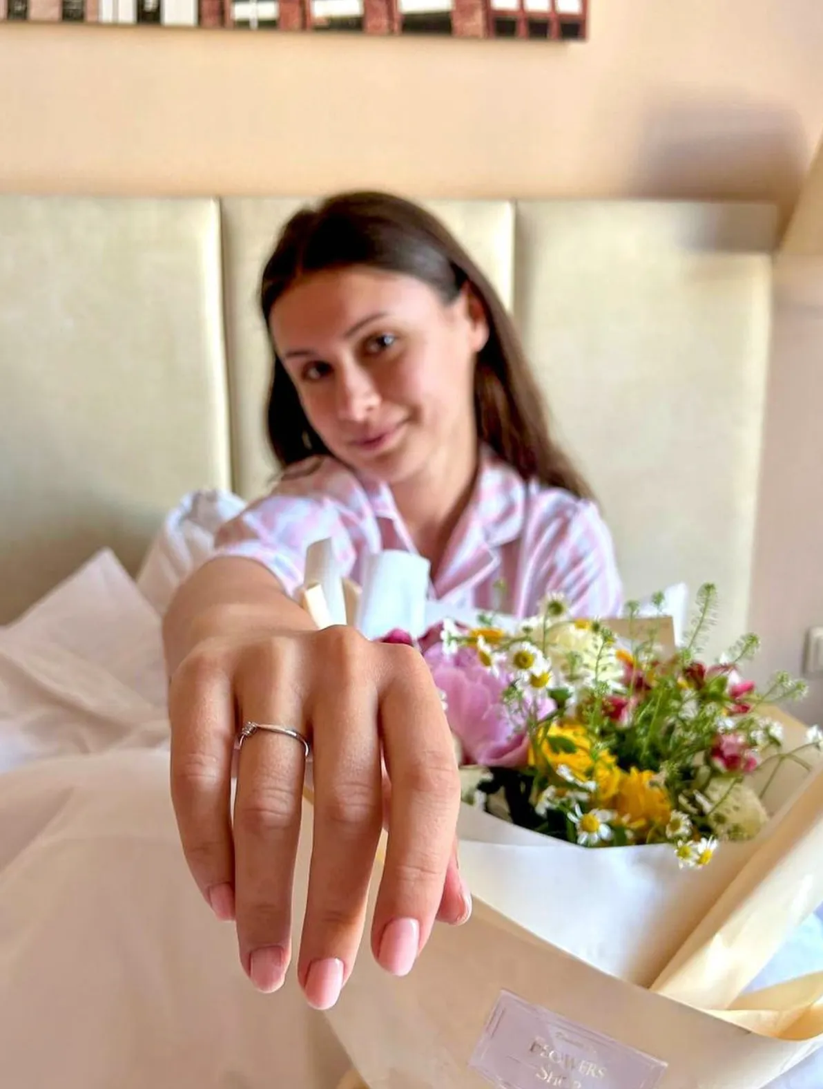 А його кохана Євгенія Мазуренко зізналася, що не очікувала цього. А зранку вона опублікувала фото з каблучкою. "Щаслива", – наголосила дівчина.