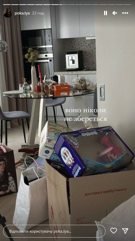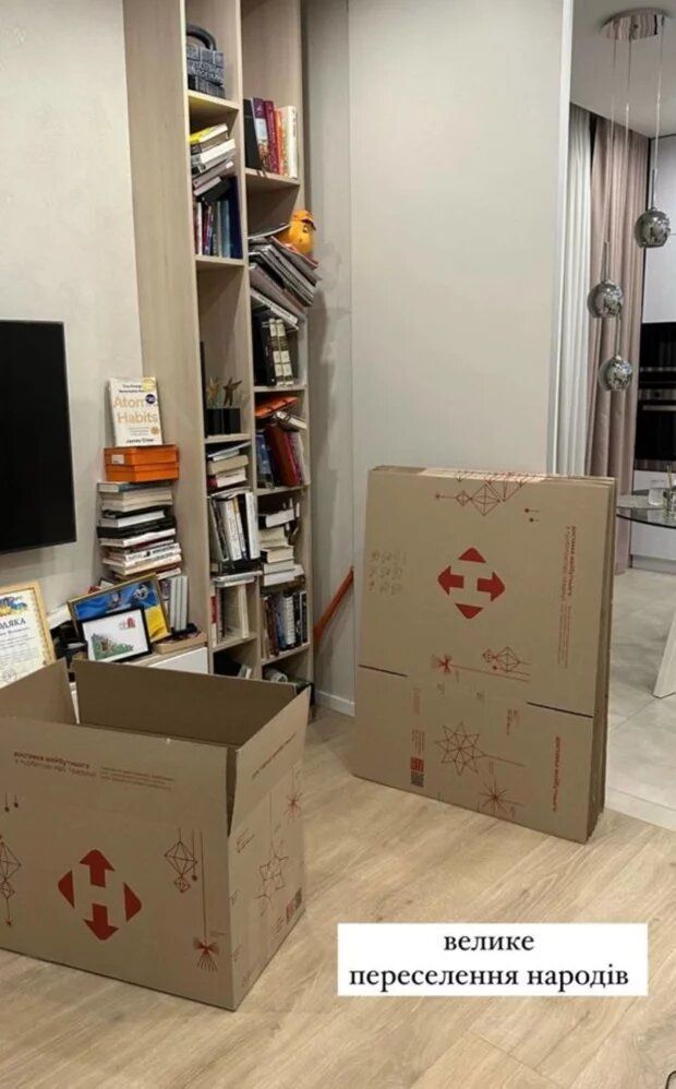 В інстаграм-сторіс Полтавська опублікувала фото, на яких показала, як готується до переїзду. Всі речі Катерина збирає у коробки, називає це "великим переселенням народів".