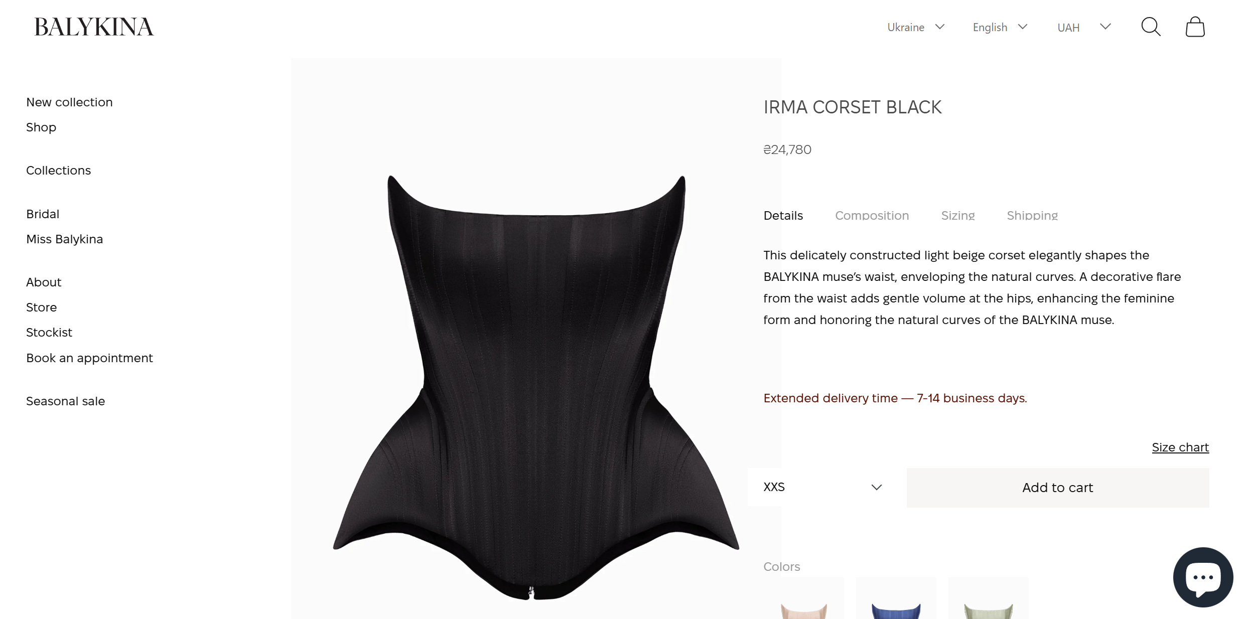 Корсет і спідниця, які одягнула Єва Лонгорія / Скриншоти з сайту BALYKINA