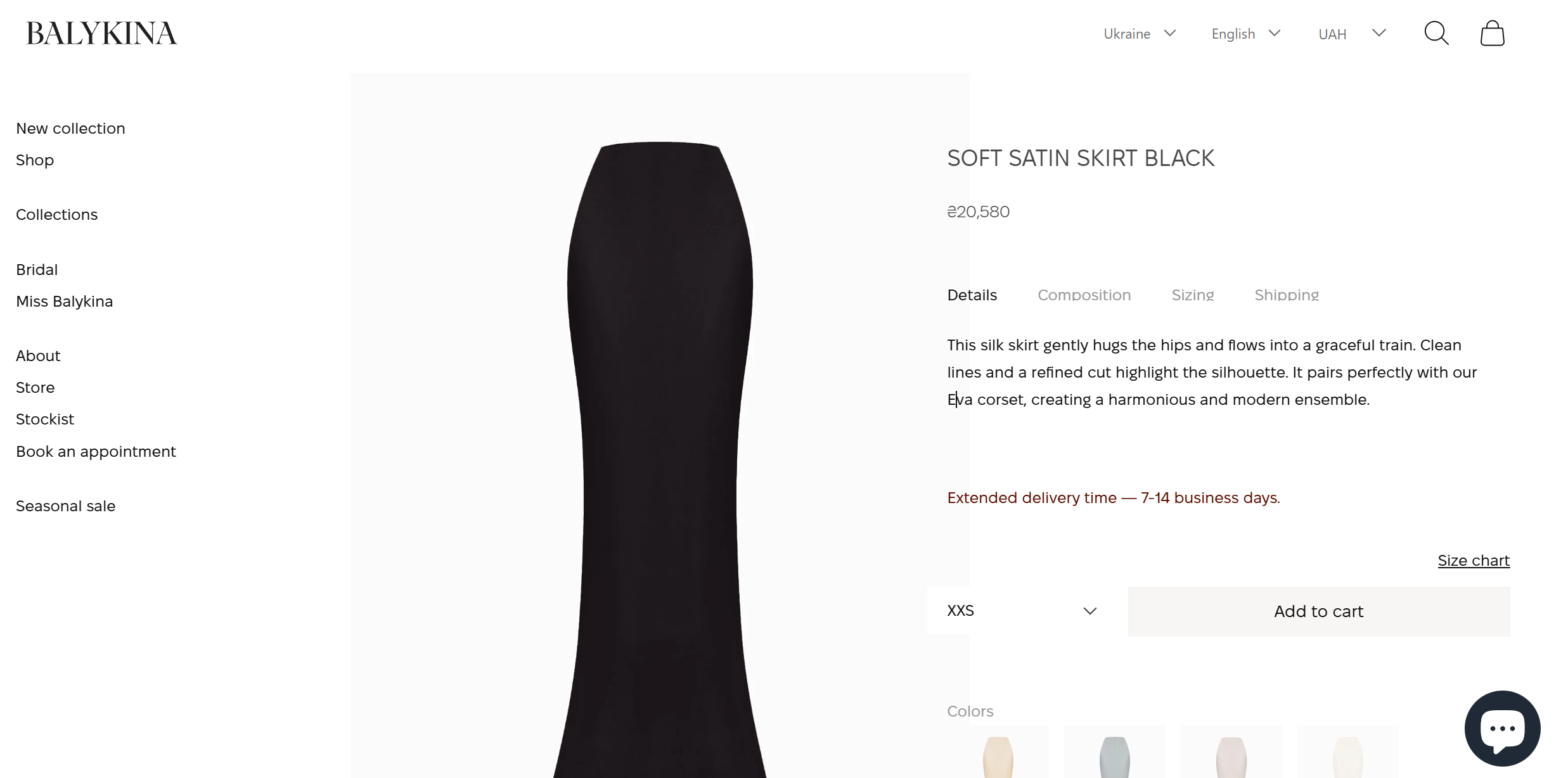 На подіум акторка Лонгорія одягнула чорний корсет Eva у мінімалістичному стилі з чіткими геометричними лініями, який вдало підкреслює талію. Його вартість на сайті BALYKINA зараз складає 24,780 гривень. Корсет Єва Лонгорія поєднала з шовковою чорною спідницею з розрізом ззаду. Спідниця коштує 20,580 гривень.