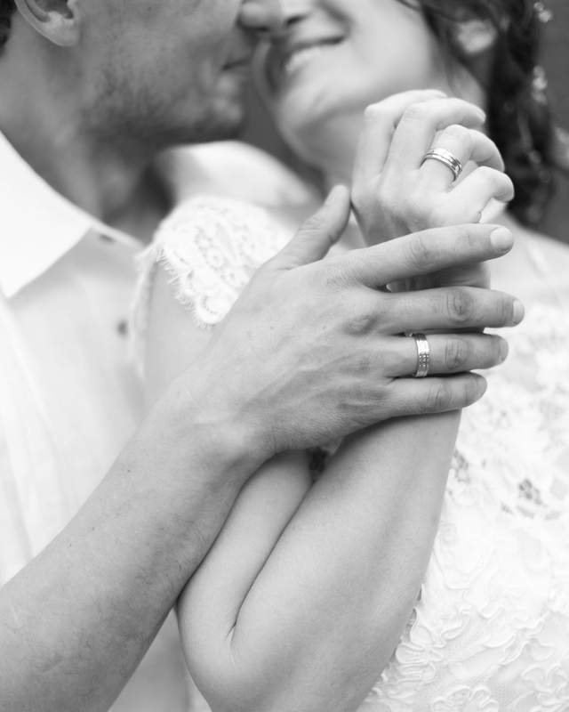 У своїх інстаграм-блогах молодята опублікували зворушливі фото з весілля: Євген Синельников – у кольорі, а його дружина Наталія – чорно-білі. На них найчуттєвіші моменти їхньої домашньої церемонії в Бучі.