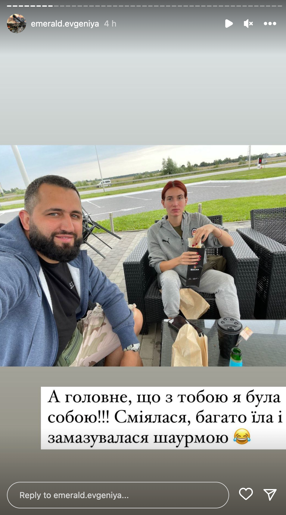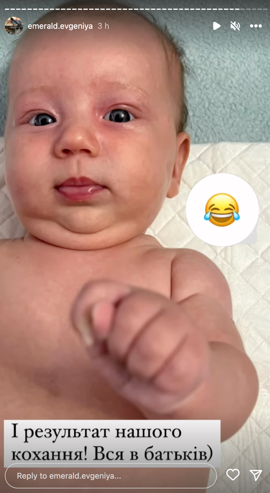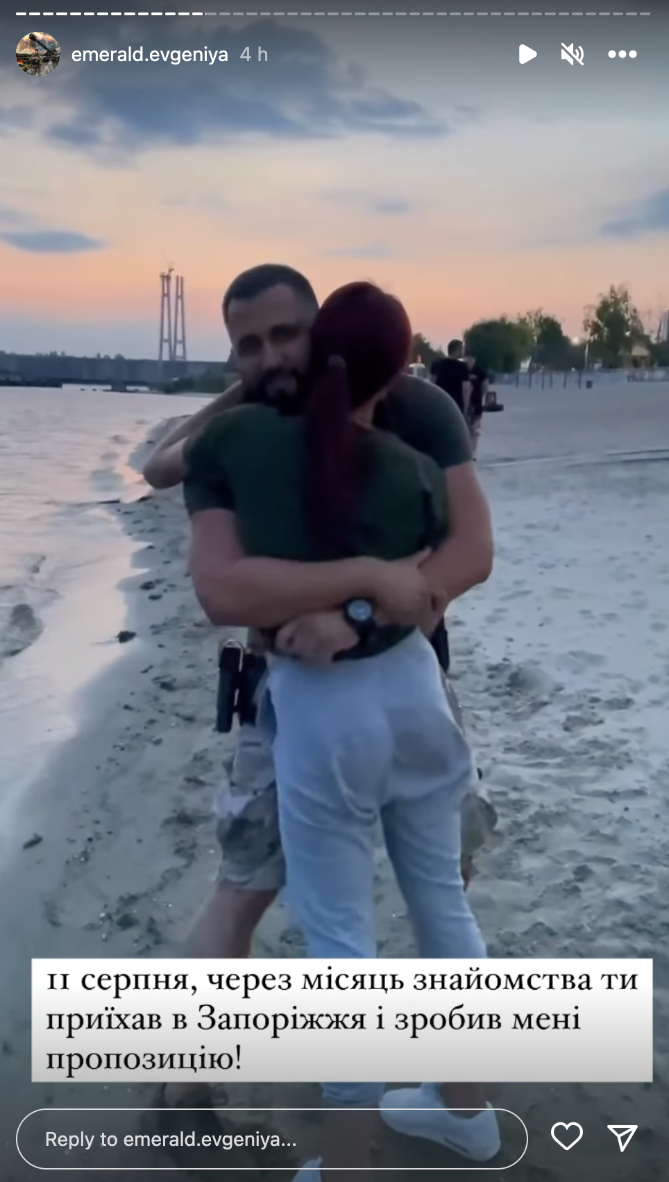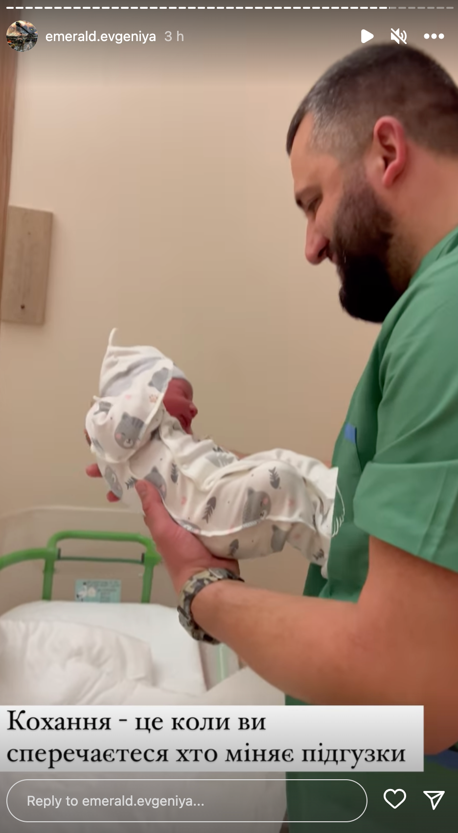 В інстаграм-сторіс Емеральд показала важливі та зворушливі моменти їхніх стосунків. Наприклад, як чоловік знайомився з донькою Євгенії, а також їхнє перше побачення, пологи та рідкісні зустрічі.