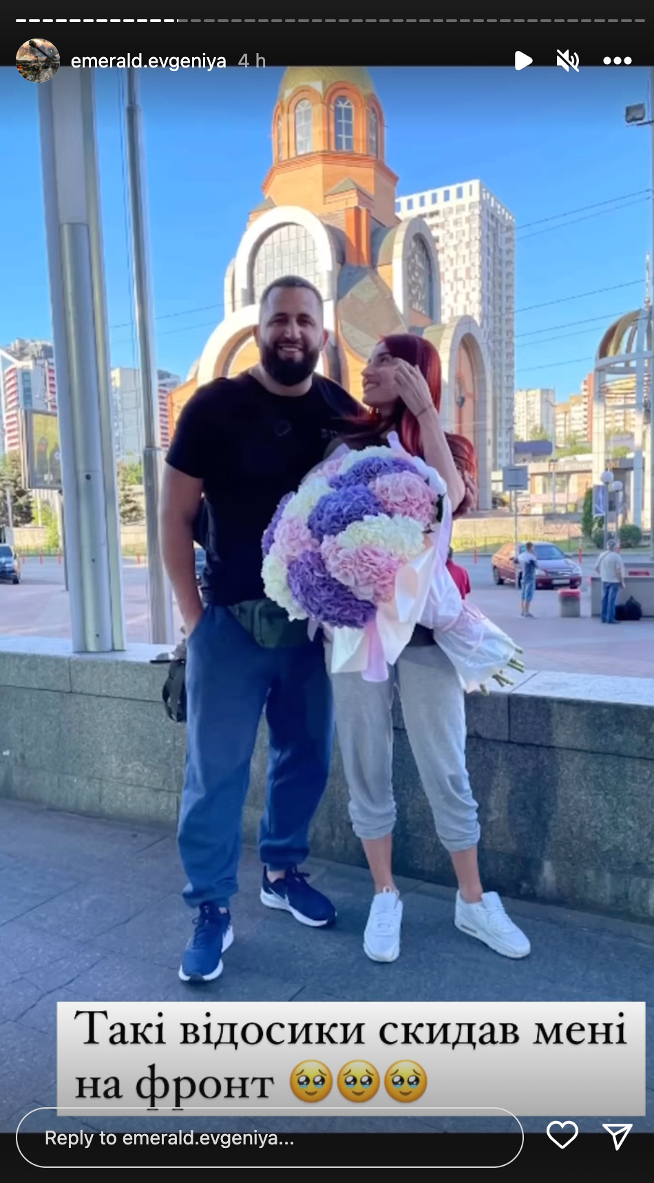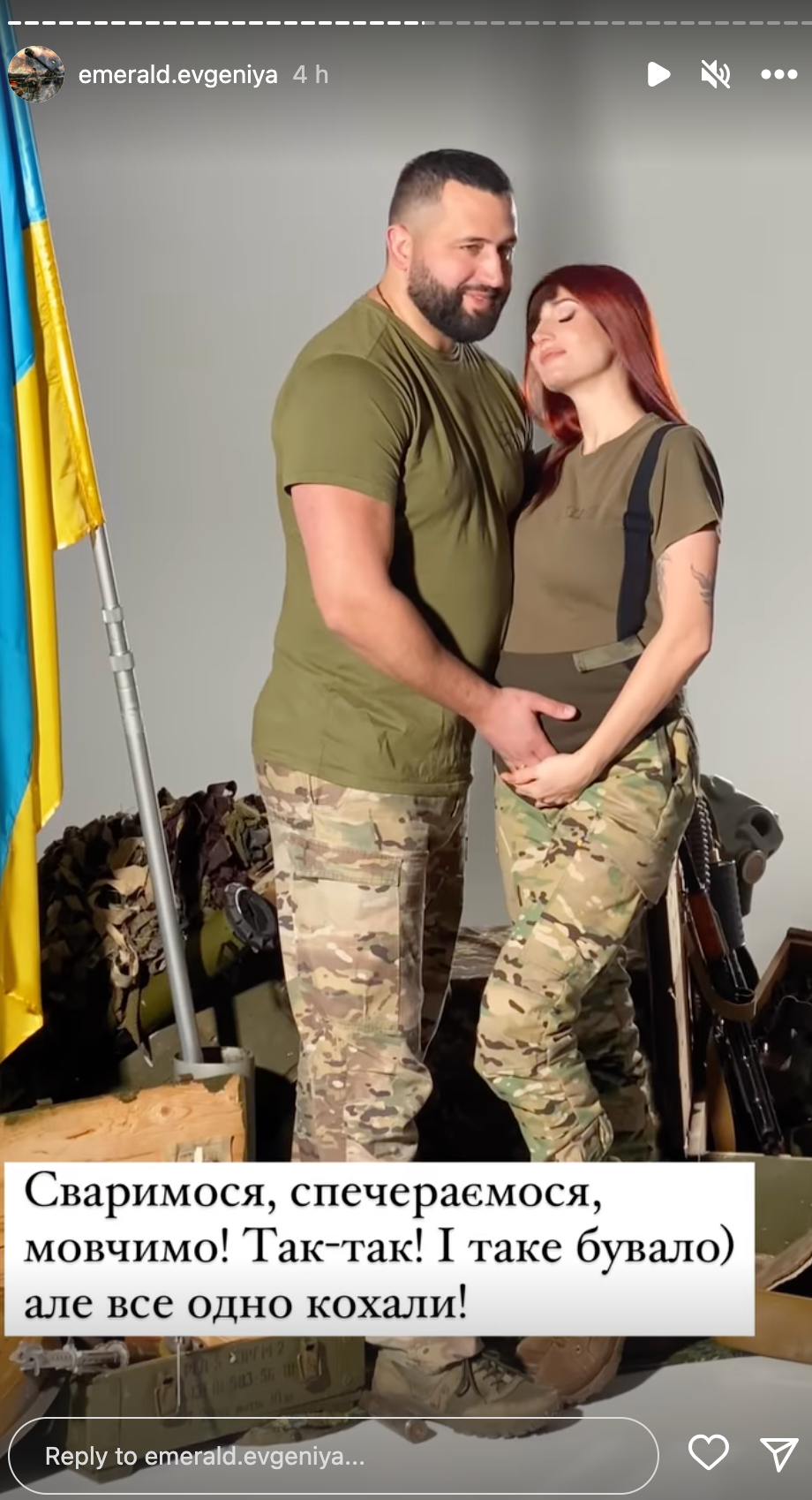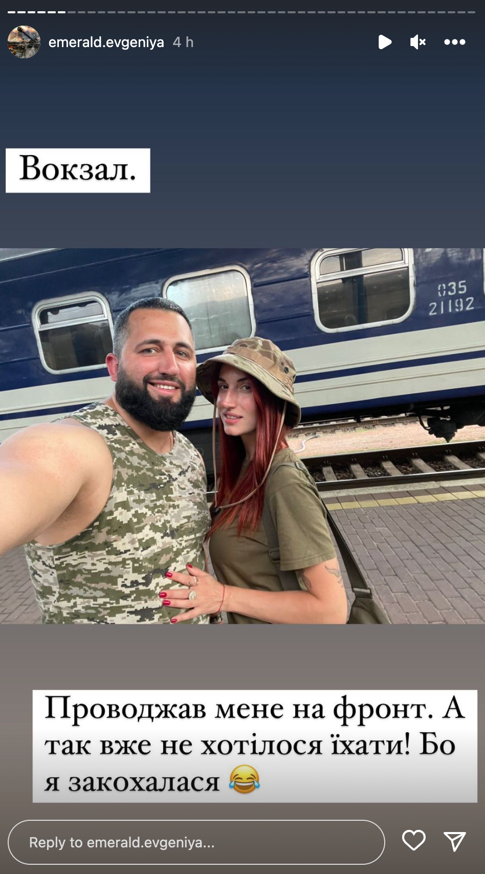 Емеральд наголосила, що вона чекає коханого з війни та вірить, що зовсім скоро вони зможуть жити звичайним життям разом. "Я кохаю тебе, мій найкращий чоловік! Ми все з тобою витримаємо! І це тільки початок нашої довгої подорожі. Кохаю!", – додала жінка.