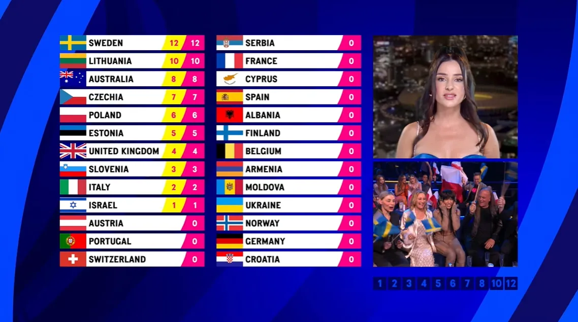 У відповідь на шістку від польського журі TVORCHI "прилетів" нуль. 12-ку вони дали Ізраїлю, 10-ку – Кіпру, а 8-ку – Естонії. У коментарях подейкують, що так країна-сусідка "помстилася" за Євробачення-2022, коли Україна проігнорувала Охмана й не вділила йому жодного балу: