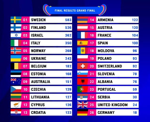 Яке місце зайняла Україна на Євробаченні-2023 / Скриншот