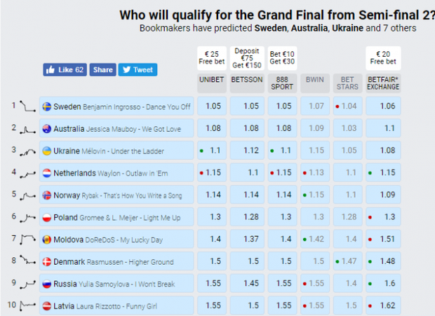На сайті міжнародного пісенного конкурсу Євробачення з'явилися оцінки букмекерів, які визначили, хто пройде у фінал в 2018 році.