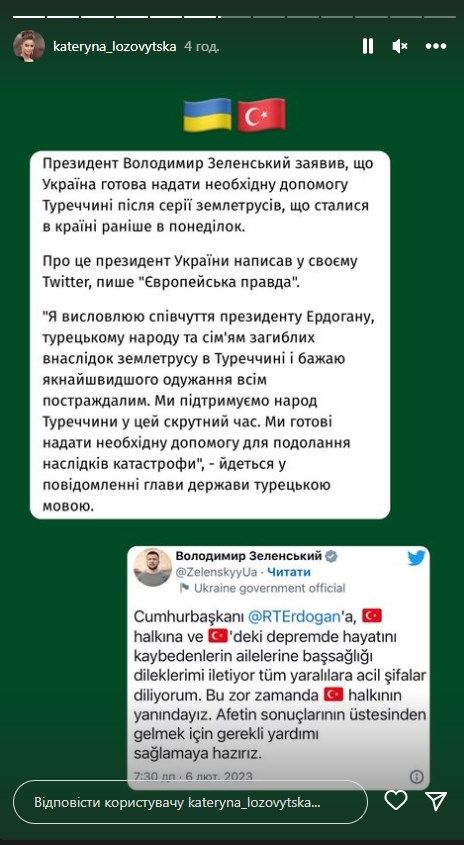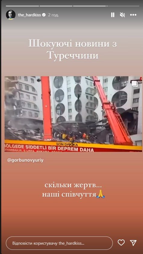 Також чимало знаменитостей висловлюють щирі співчуття турецькому народу в інстаграм-сторіс.